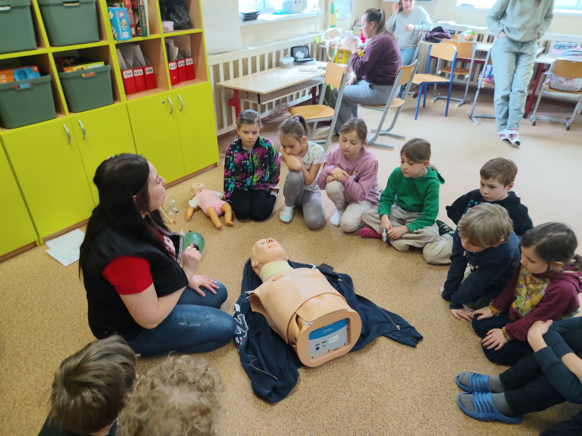 Akce Mladý záchranář v MŠ i v ZŠ. Obrovské poděkování patří paní Zářecké, která za námi ve vlastním volnu dorazila a dětem sdělila mnoho důležitých poznatků - o první pomoci, o tom, komu volat, když se stane něco nepěkného, dále o aplikaci Záchranka a mnoho dalších informací. Tohle se dětem bude určitě hodit.