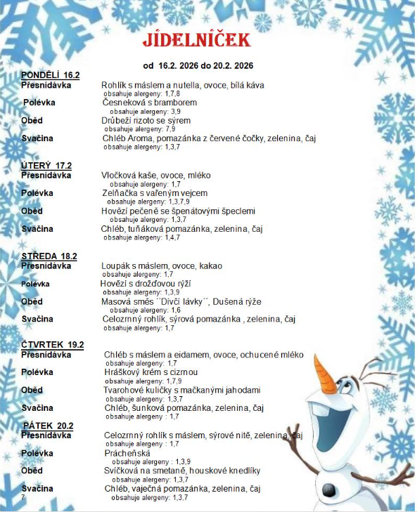 Jídelní lístek od 16. 2. 2026 do 20. 2. 2026